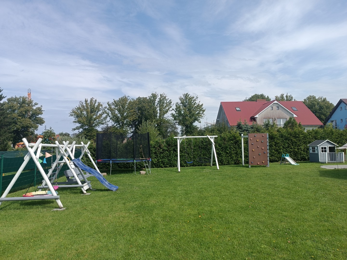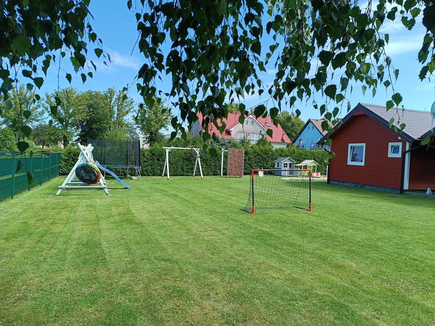 Domki położone są z dala od ruchliwej ulicy co sprzyja komfortowi wypoczynku. Cały teren jest ogrodzony, co pozwala na spokojny wypoczynek i bezpieczeństwo zabaw dzieci.Dla milusińskich oferujemy plac zabaw z huśtawkami i trampoliną. Dla starszych boisko do gry w siatkówkę i badmintona.